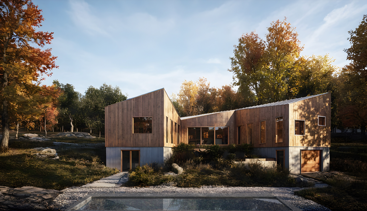 Ohayo Mountain Houseis a three-bedroom, single-story house surrounded by 2.15 acres of wooded land in the charming hamlet of Glenford, just minutes from Woodstock. Designed and developed by Amin Tadj Studio as a model of eco-friendly luxury, borders of privacy, individuality, and community blend within a relatively small footprint.