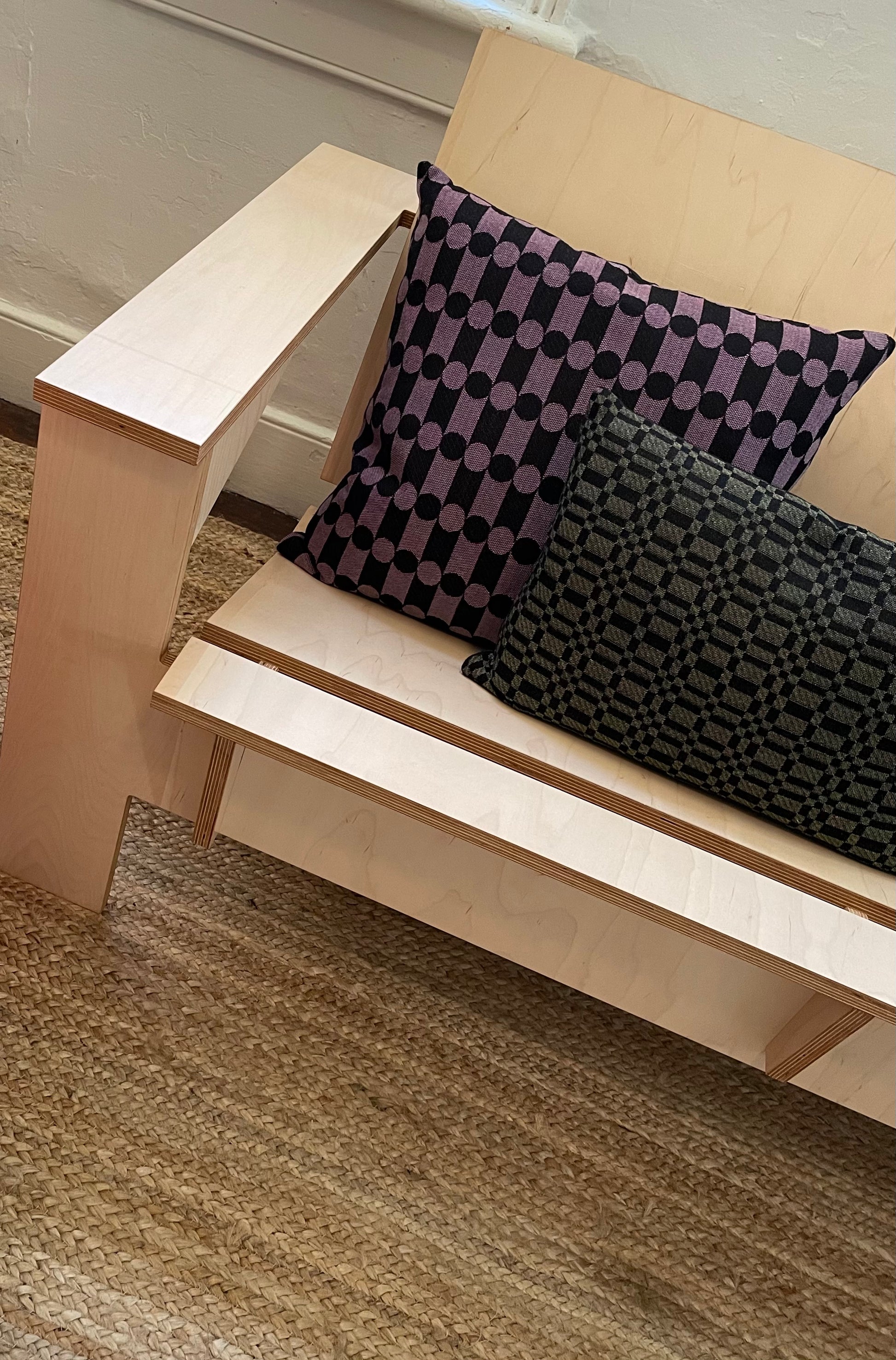 This lumbar pillow by New York-based textile designer Emma Harling is available in three sophisticated patterns.