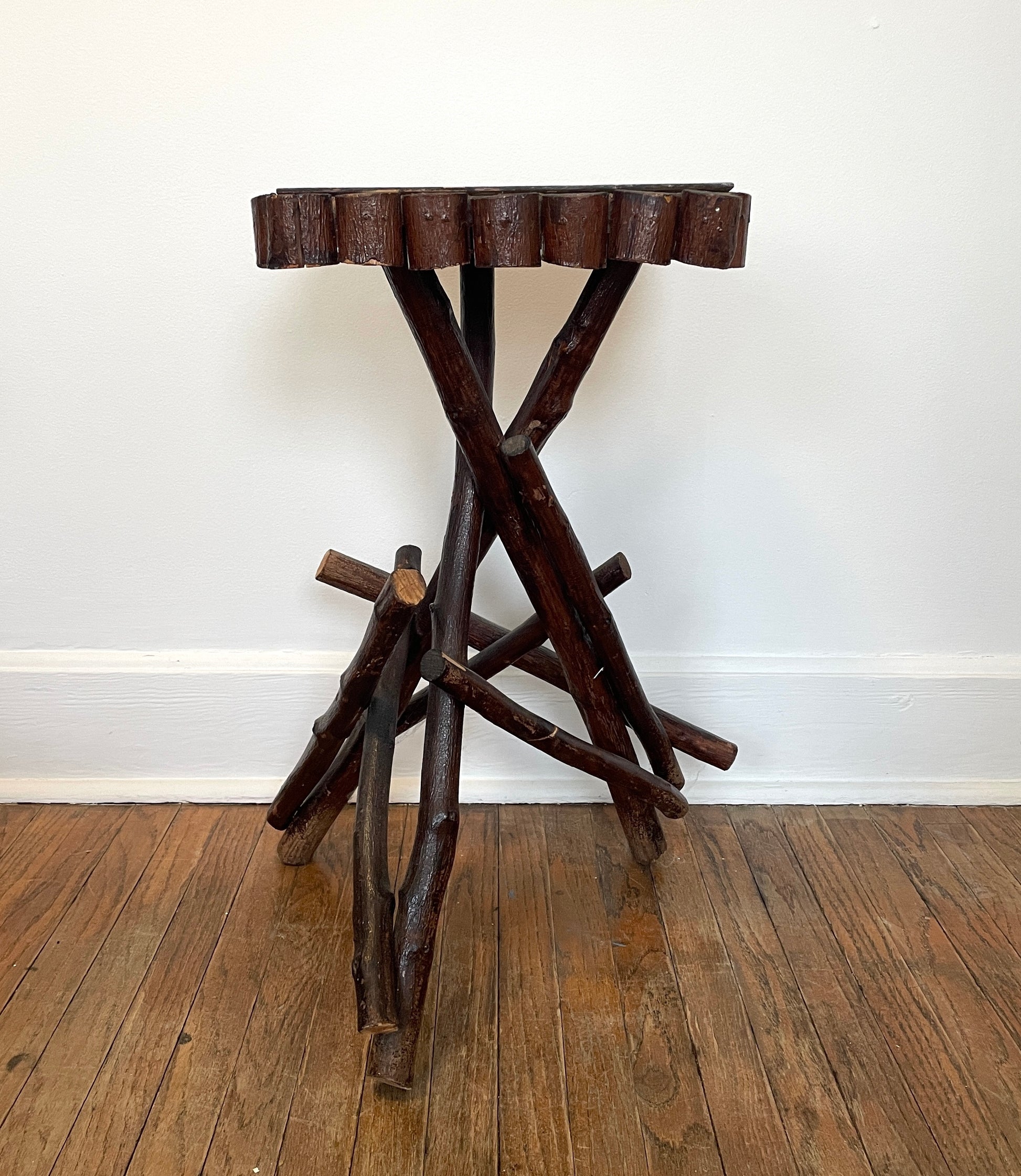 Handmade, vintage Adirondack twig table in great condition. A solid side table that adds a bit of rustic charm.