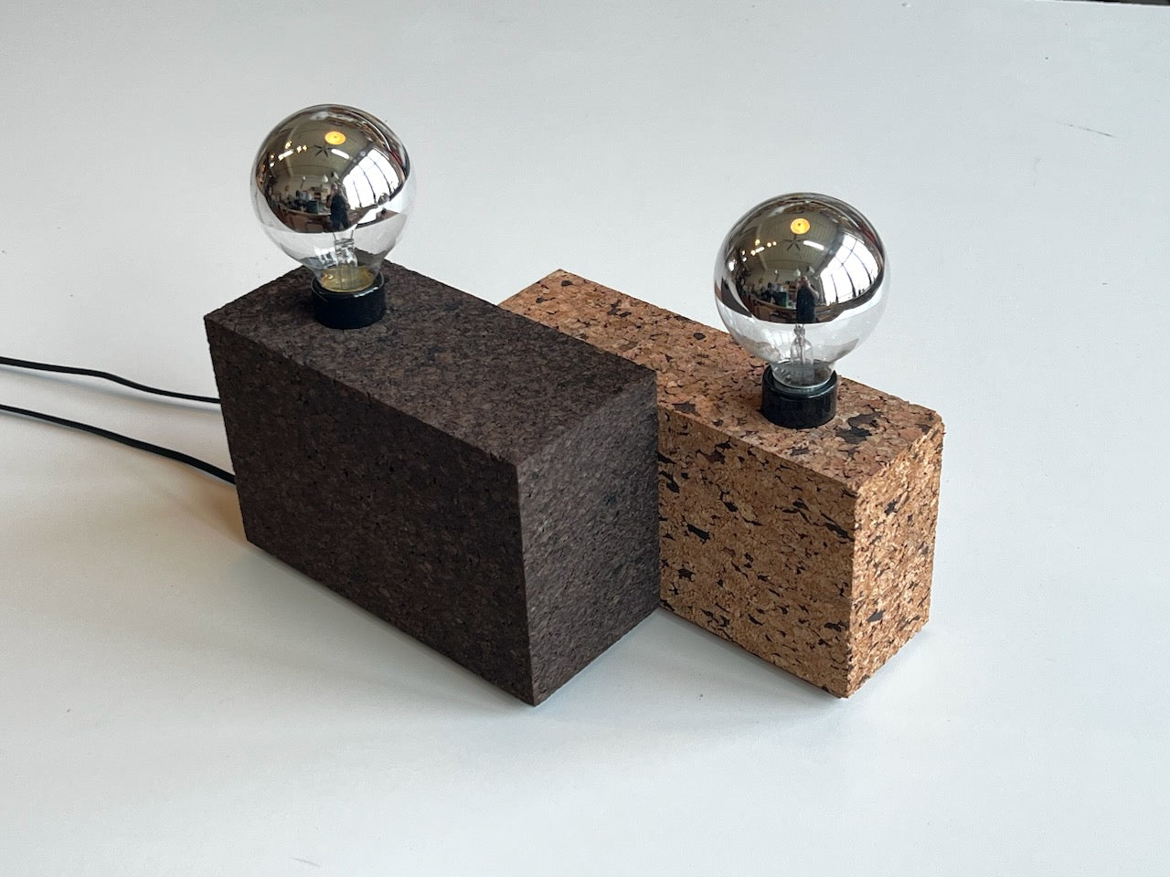 Cork table lamps designed by Daniel Michalik. Handcrafted from recycled and expansion-molded cork.
