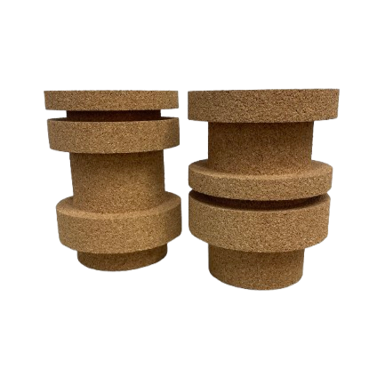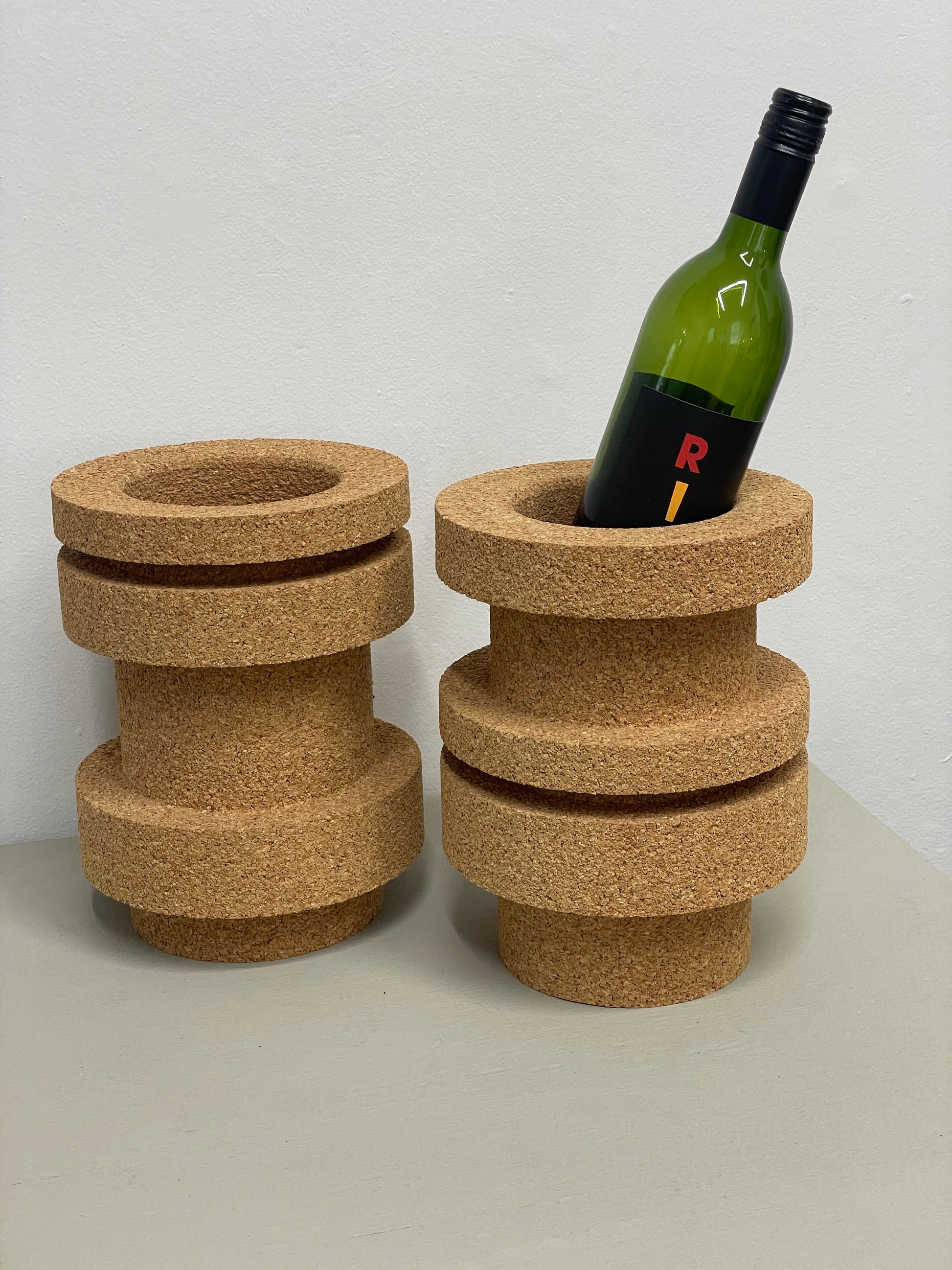 Geometric bottle chillers designed by Daniel Michalik. Handcrafted from recycled cork.