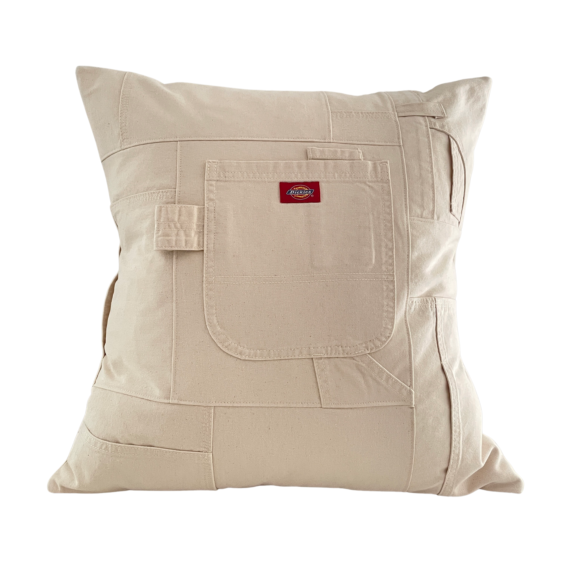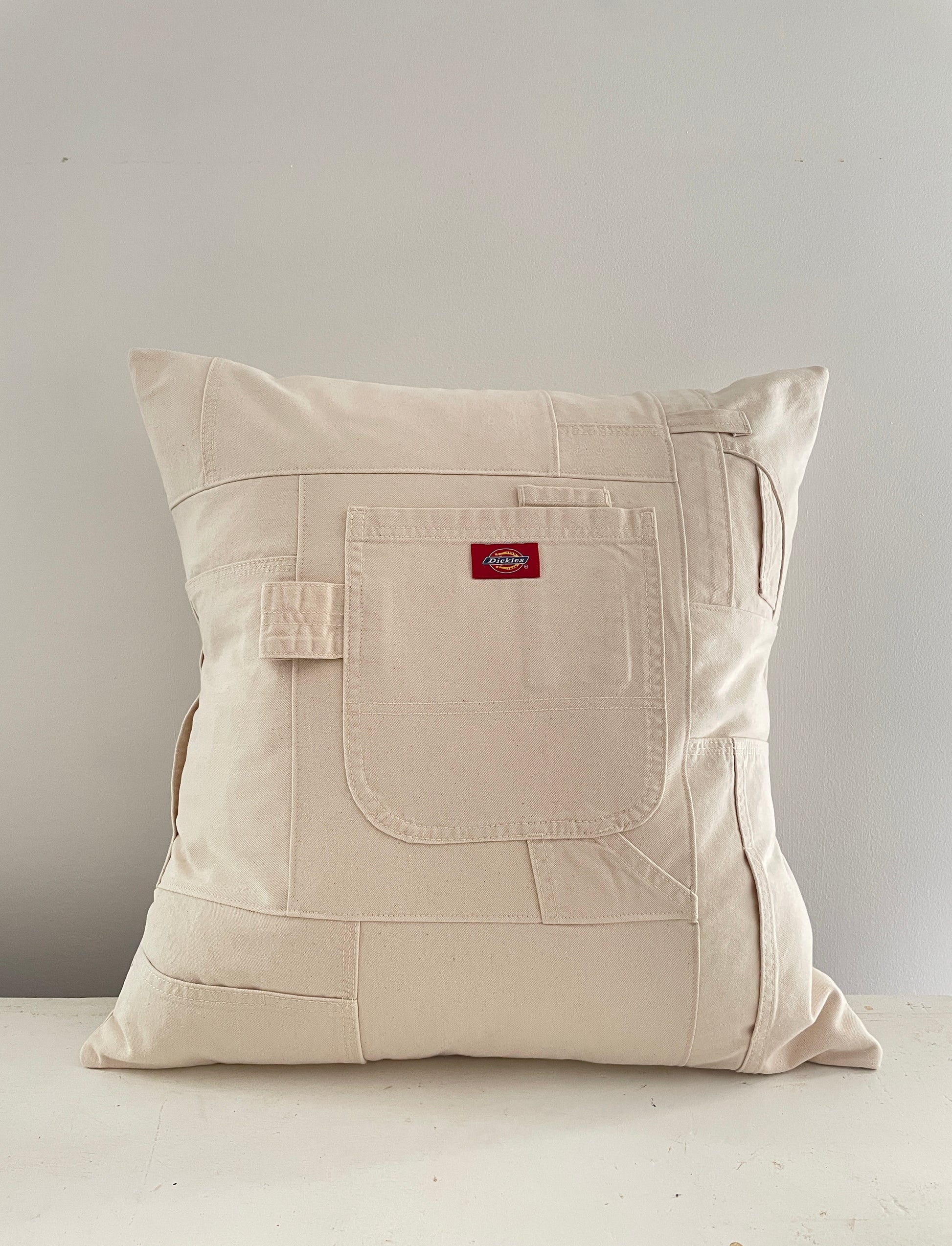 Limited edition pillows by Hudson Valley artist Lauren Hirsch made from deconstructed Dickie's painter's pants. Originally designed for the 2025 Nuts & Bolts exhibition at Available Items.