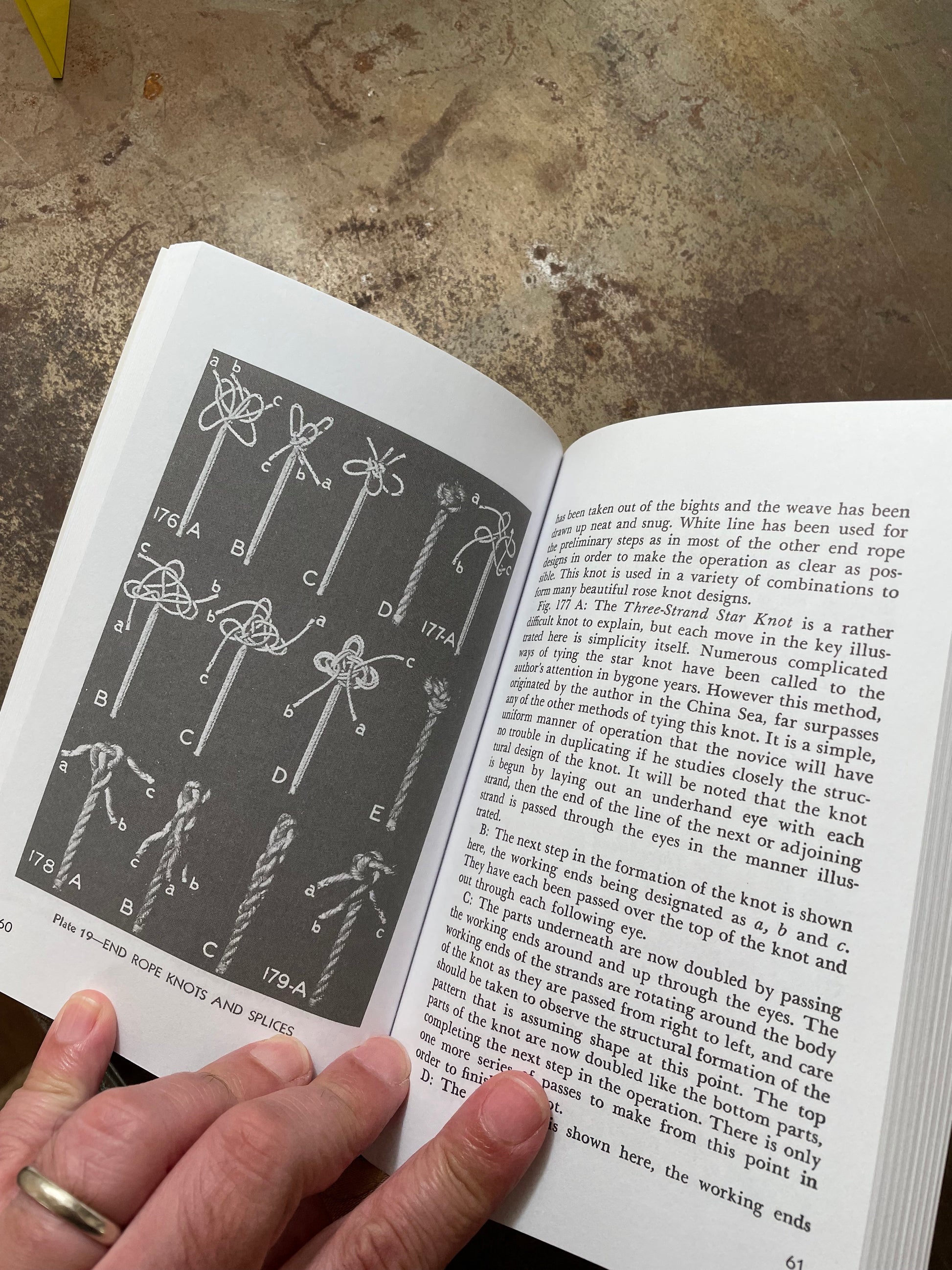 This handbook serves as a practical guide for all phases of knot techniques—both practical and decorative in purpose. Much more than a reference work, the handbook leads the interested reader to the mastery of an artistic and absorbing hobby. Common types of work knots, such as hitches, sheepshanks, and bowlines are demonstrated along with a good explanation of blocks and tackle. There are sections on sennet braiding, ornamental designs, lashings, securing hawsers, boatswain’s chair, hammock making, and various ties which provide an excellent foundation for understanding and executing general knot work and weaving. The detailed illustrations and clearly written text in this small book make knot-tying easy for the beginner. More than 400 knots for all types of outdoor activities, crafts, trades, hobbies, and handicrafts are indexed by name and use and illustrated by Raoul Graumont & Elmer Wenstron