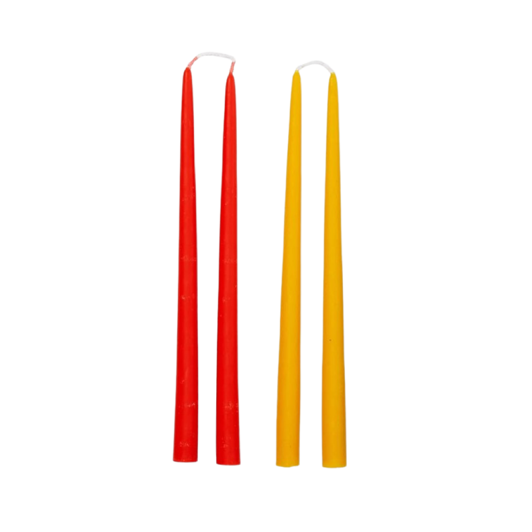 These beeswax tapers are hand-dipped and infused with just a smidge of honey, creating a delightful scent and adding a pop of color to your home. They're sure to create a buzz and bring a touch of sweetness to your space. Material: Beeswax and a hint of honey Dimensions: 0.8 x 0.8 x 11.5 Remember to never leave a burning candle unsupervised. Enjoy approximately 8.5 hours of burn time.