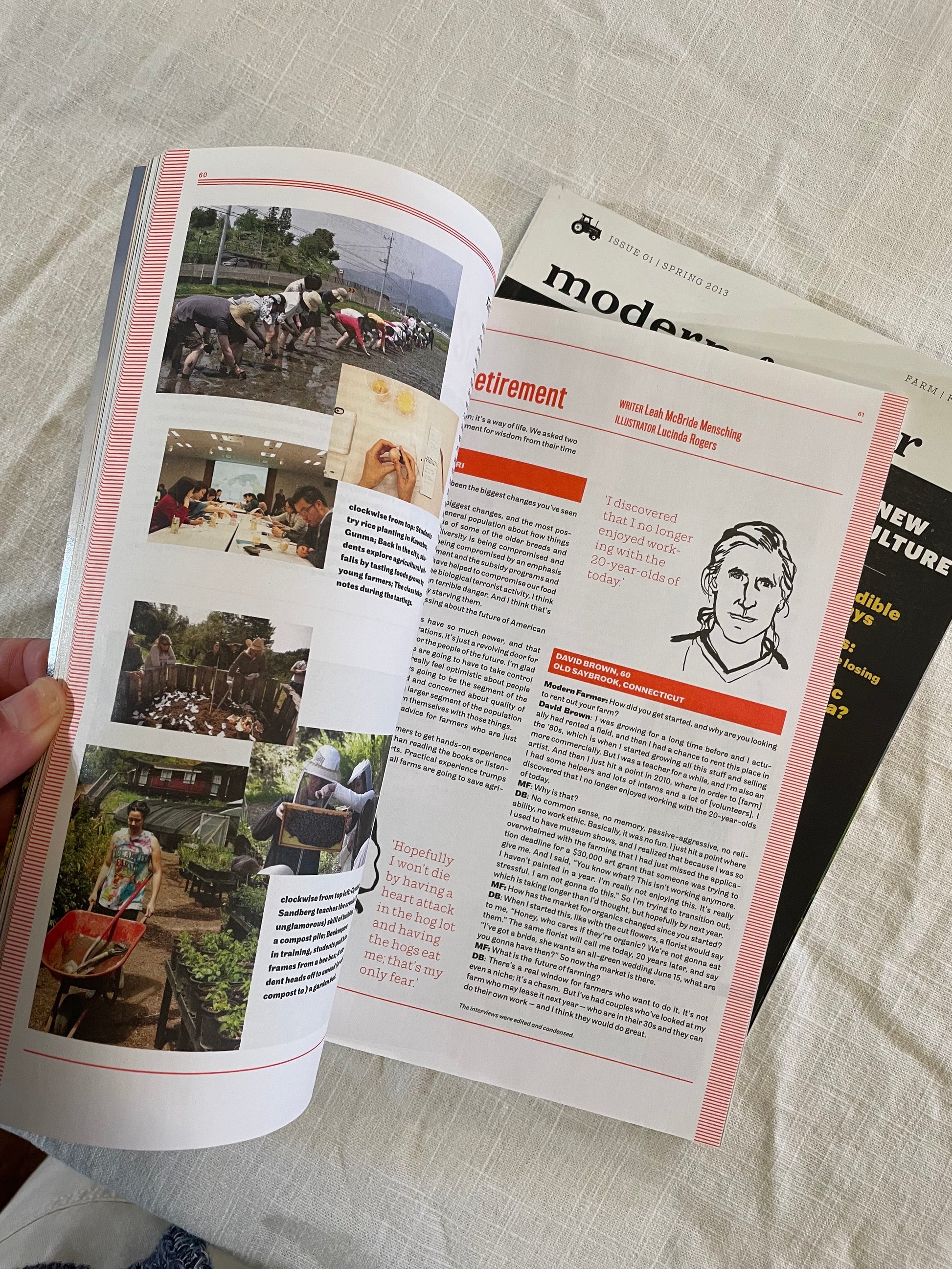 Modern Farmer is a quarterly American magazine devoted to agriculture and food, founded in April 2013. The magazine is unique in that it attempts to have equally rural and urban readers, and to "appeal to the person who wants to romanticize farming and the person who is knee deep in turkey droppings", according to The New York Times. In 2014, the publication won the National Magazine Awards for the Magazine Section.