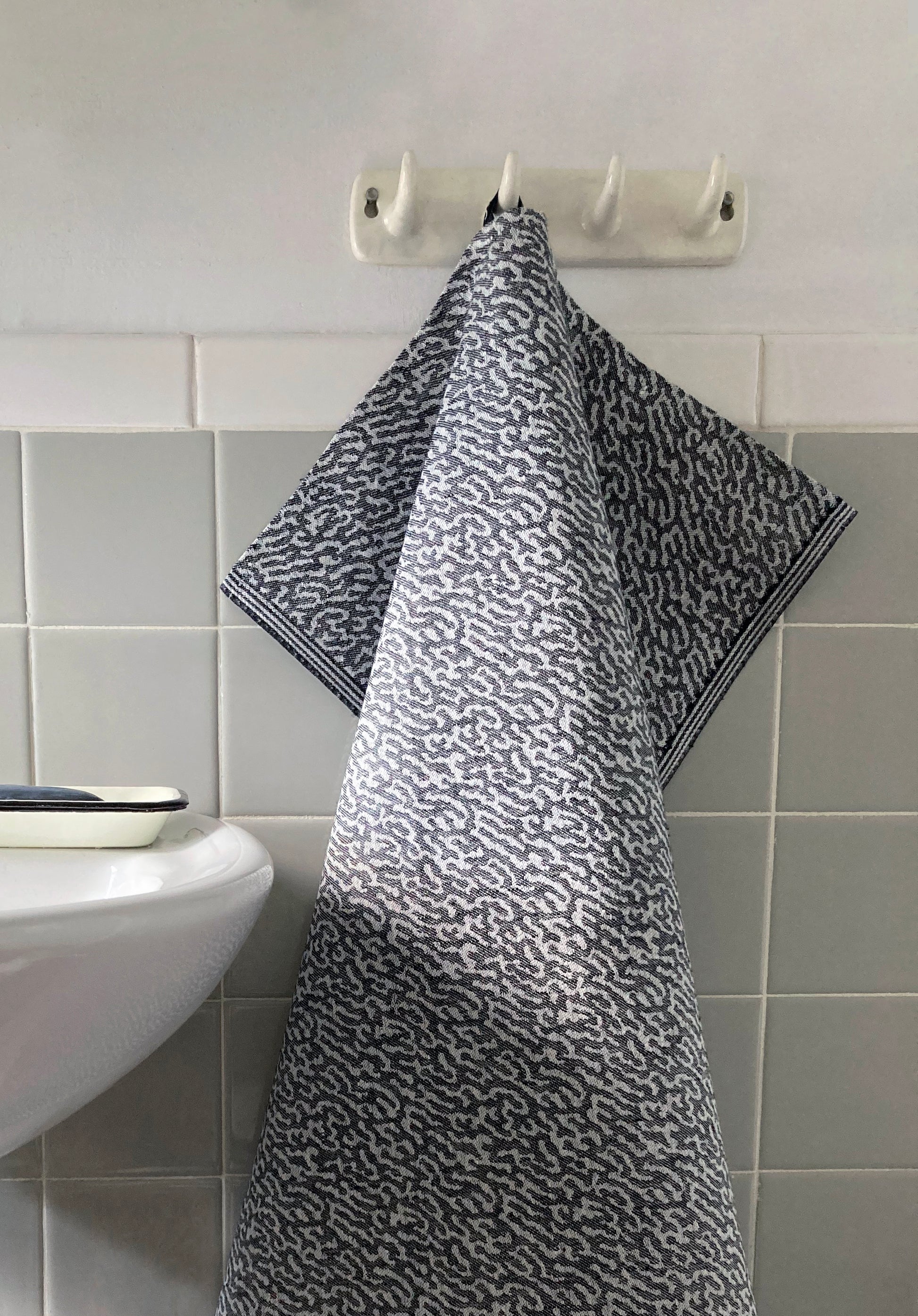 Jacquard woven from GOTS certified linen, the towels are strong, durable and have a natural luster when newly pressed. The material is highly absorbent, quick drying, and naturally antibacterial. They soften with time and last for ages when properly cared for.