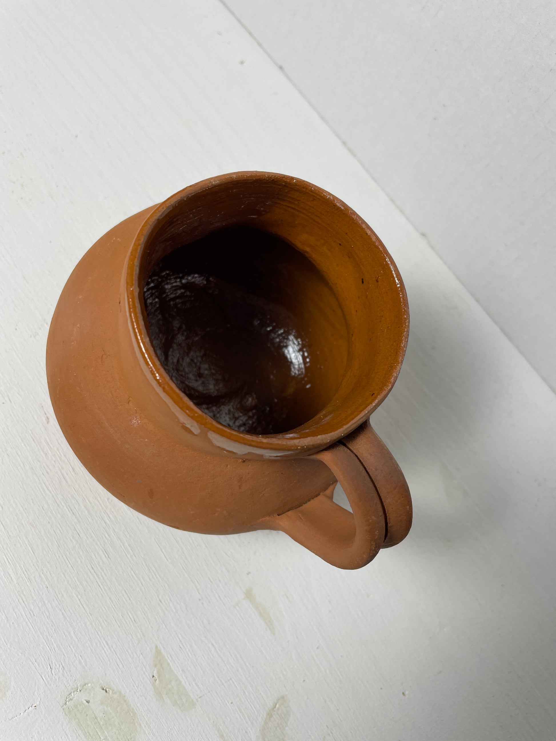 Small terracotta jug pitcher w/ handle - 5"d x 4"h