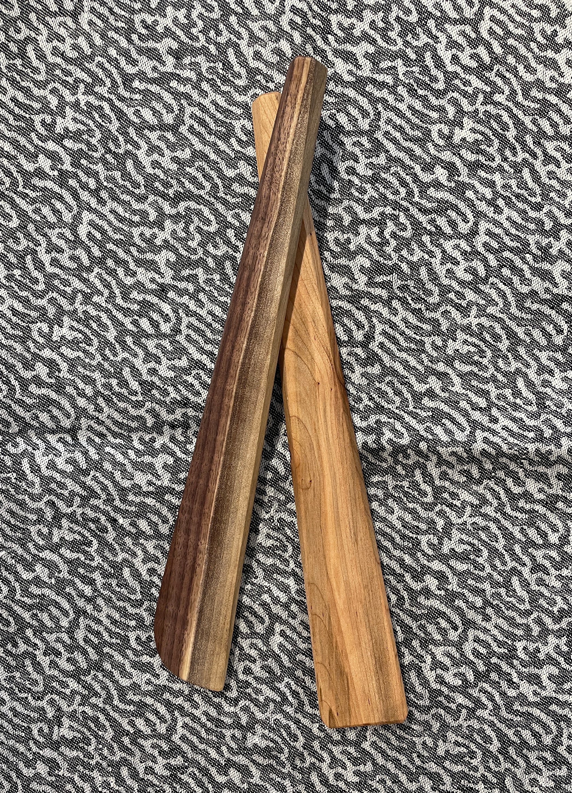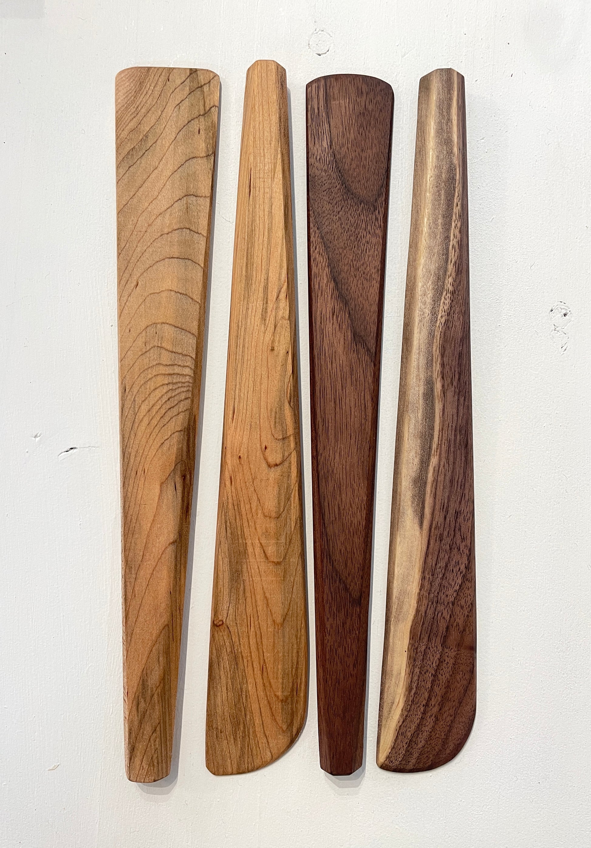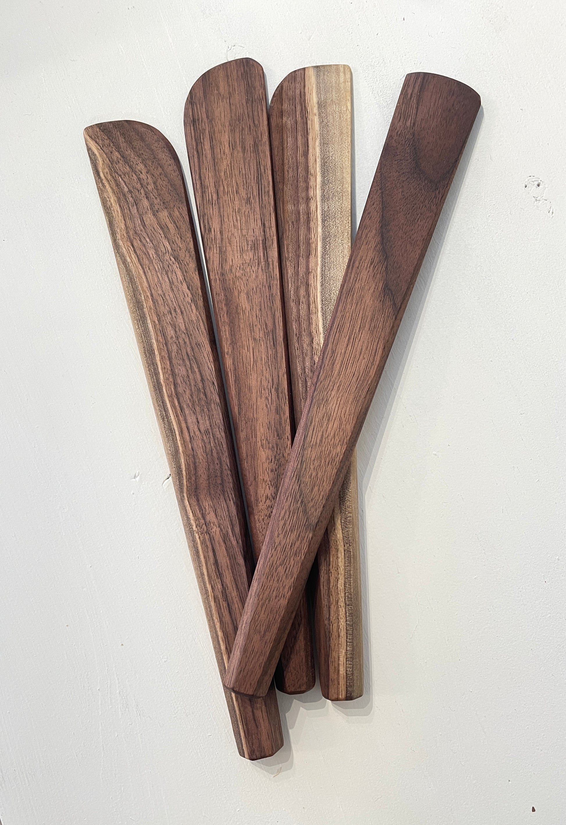 Handmade wooden spatulas by Ari Kardasis. Available in maple & walnut. Roughly 12" long.