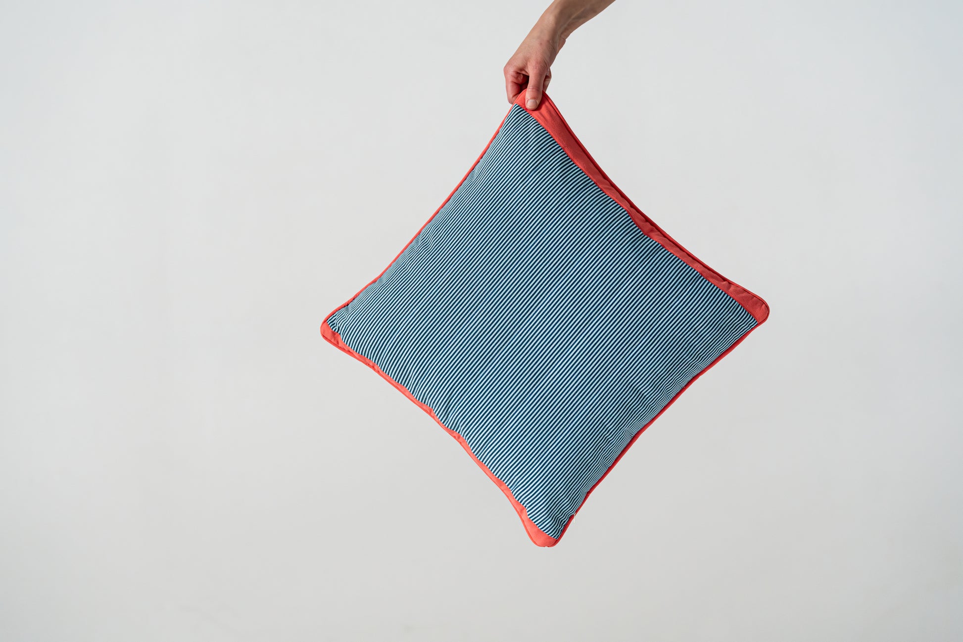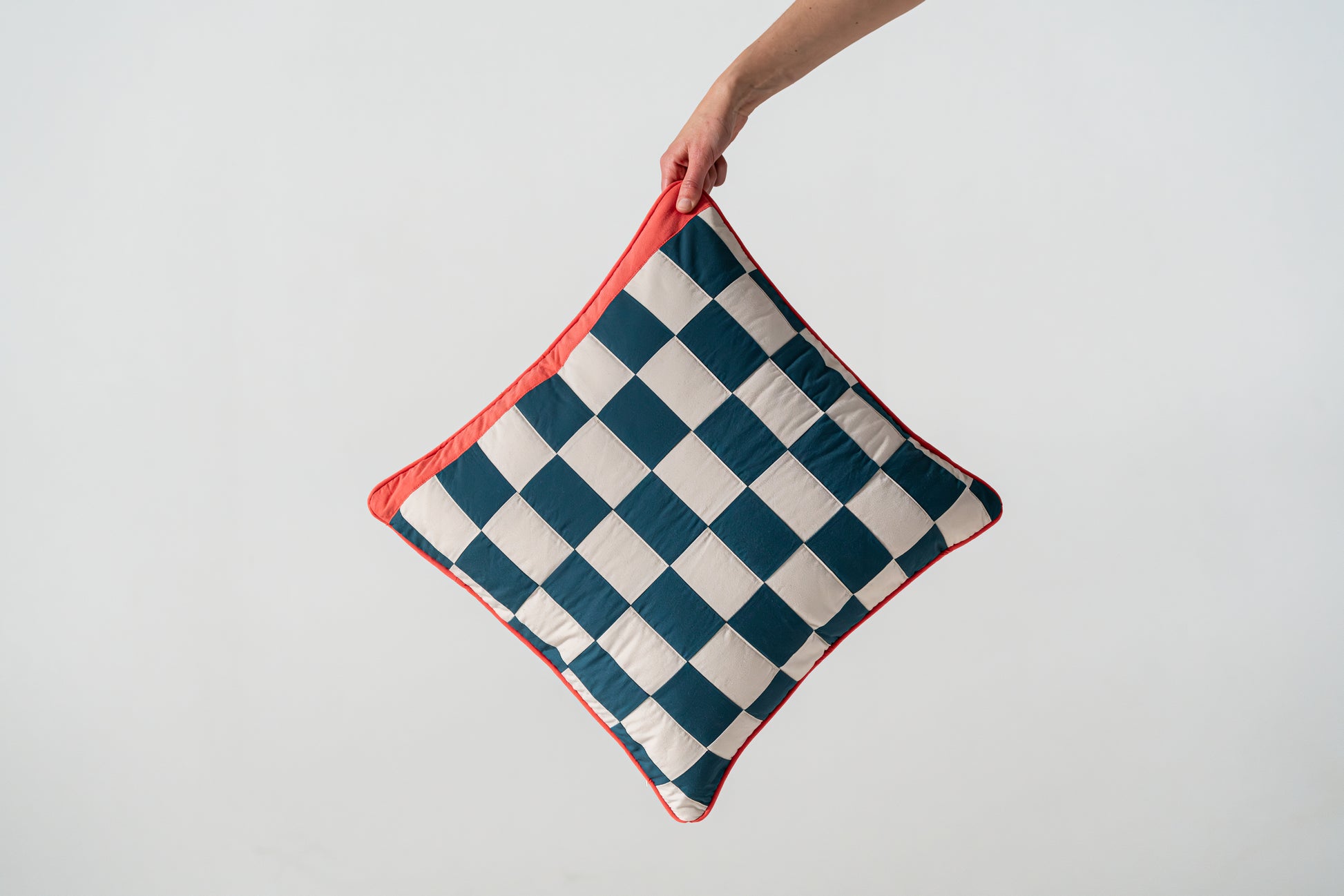 checker blue and cream (with blue pinstripe on reverse) - 18"x18"