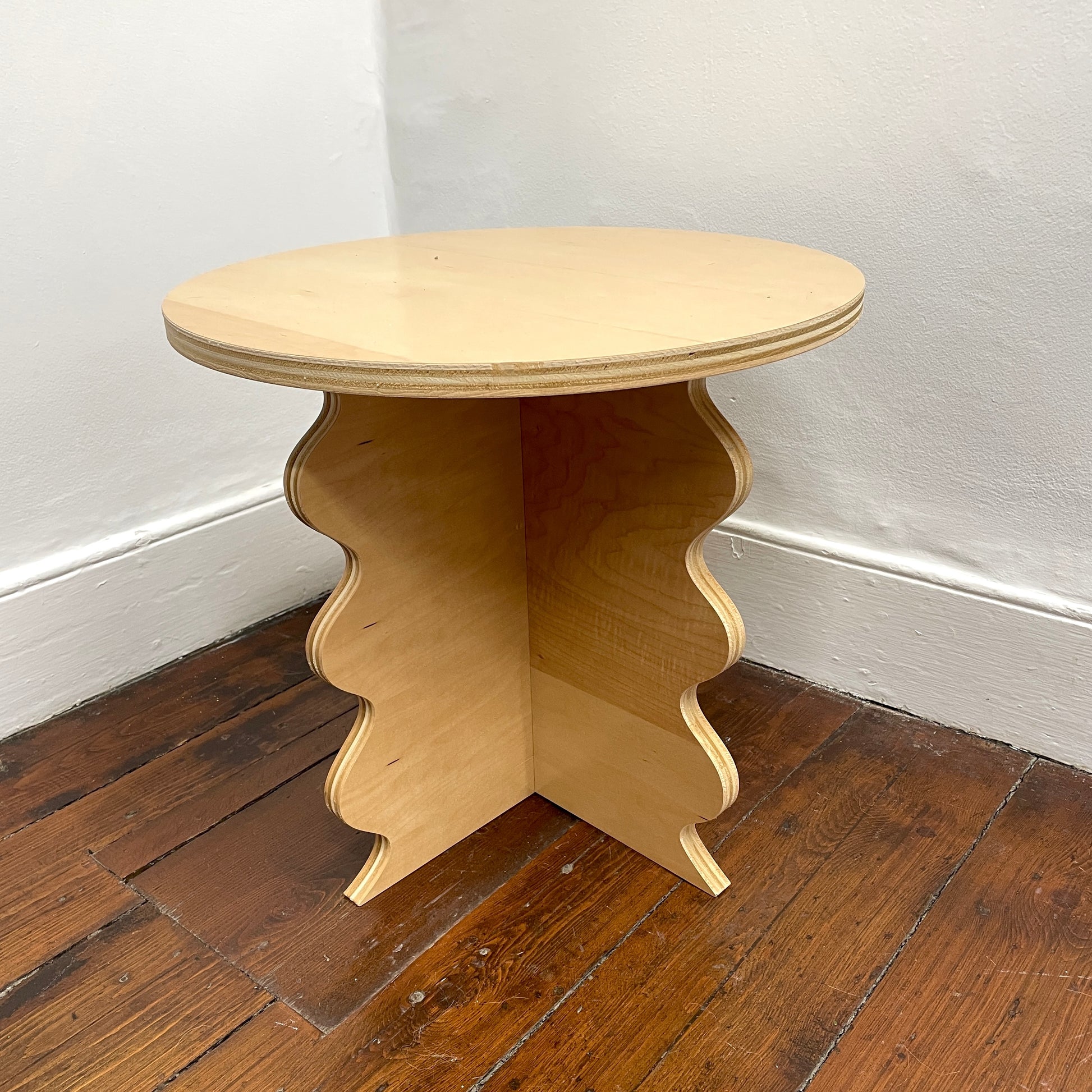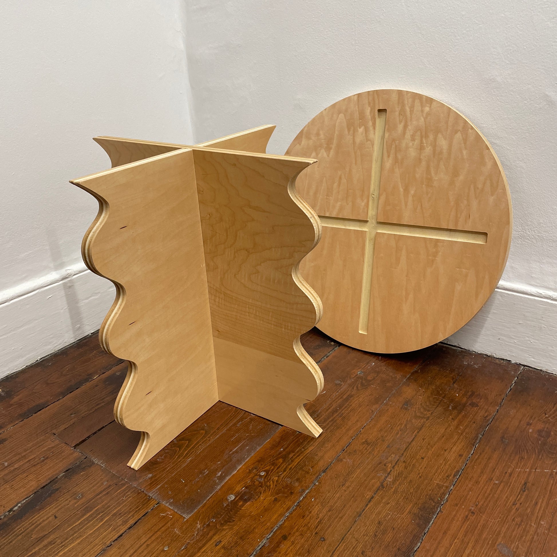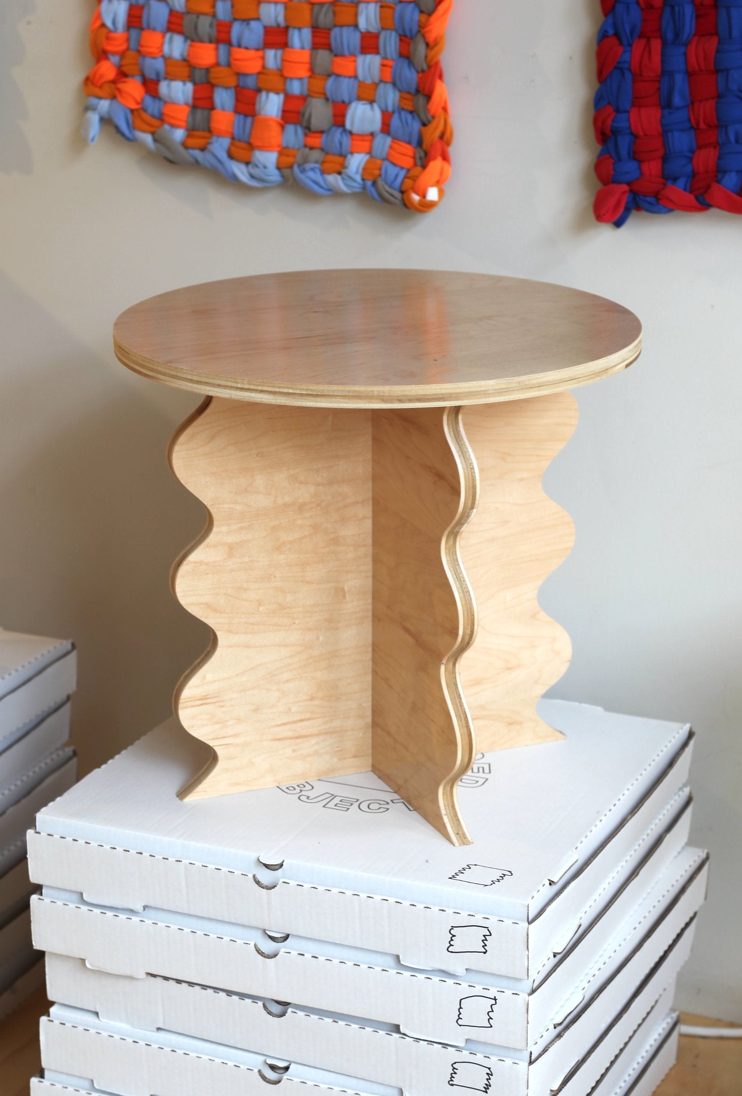 The To-Go side table by Hudson Valley design studio LikeMindedObjects is not only handsome but handy! Made of three pieces of glossy maple plywood with a center lap joint and pressure fit, it assembles and disassembles in under a minute, and flatpacks neatly into a pizza box.