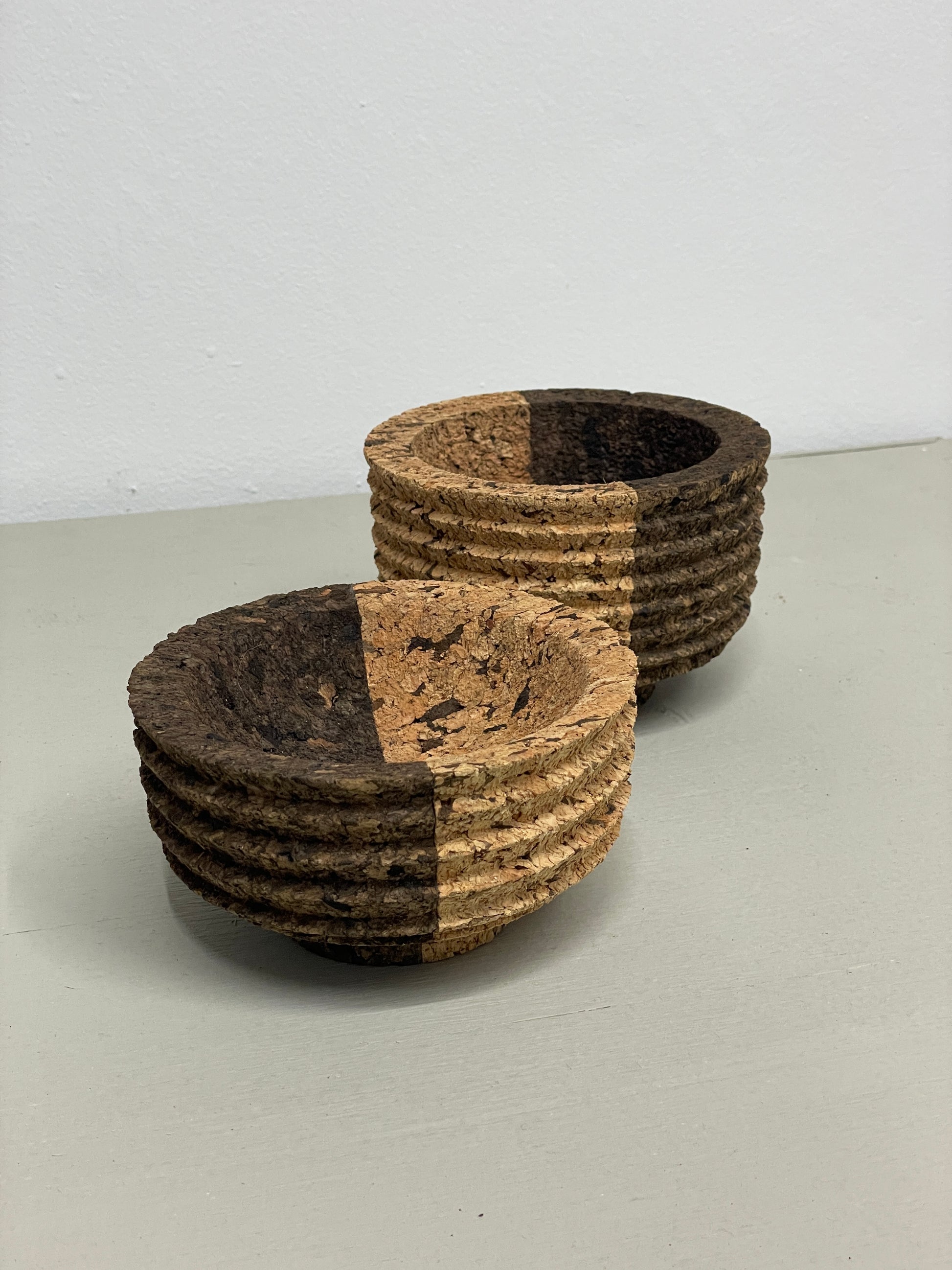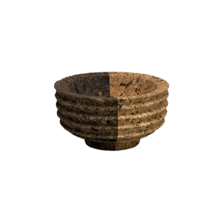 Two tone cork bowls with exterior ridges designed by Daniel Michalik. Handcrafted from recycled and expanded cork.