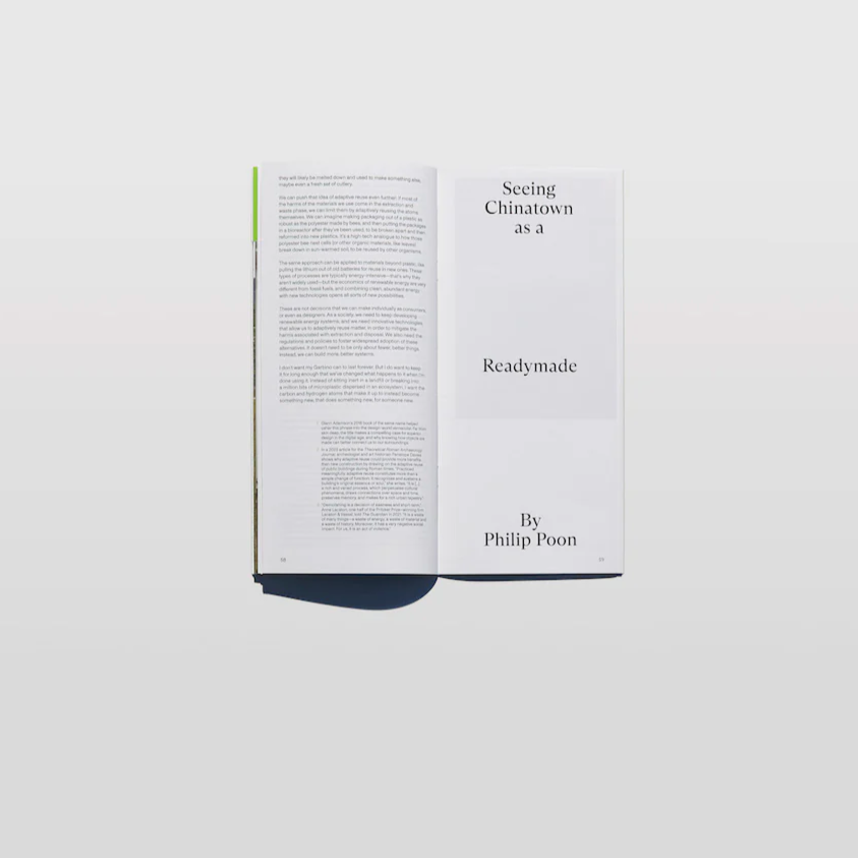 Eleven essays and interviews comprise the second print edition, which features a mix of new and existing content. Stories include Philip Poon on seeing New York’s Chinatown as a readymade, Josh Itiola on how Nancy Holt’s 1980s “System Works” installations exposed our unconscious dependence on basic architectural frameworks, Anthony Paletta on W.G.Clark’s place-centric buildings, and Anne Quito on the still-growing bodies of work by American Studio Craft legends Wendy Maruyama and Tom Loeser. Other contributors include Anjulie Rao, Deb Chachra, Jarrett Fuller, Edwin Heathcote, Shane Reiner-Roth, and Alissa Walker.